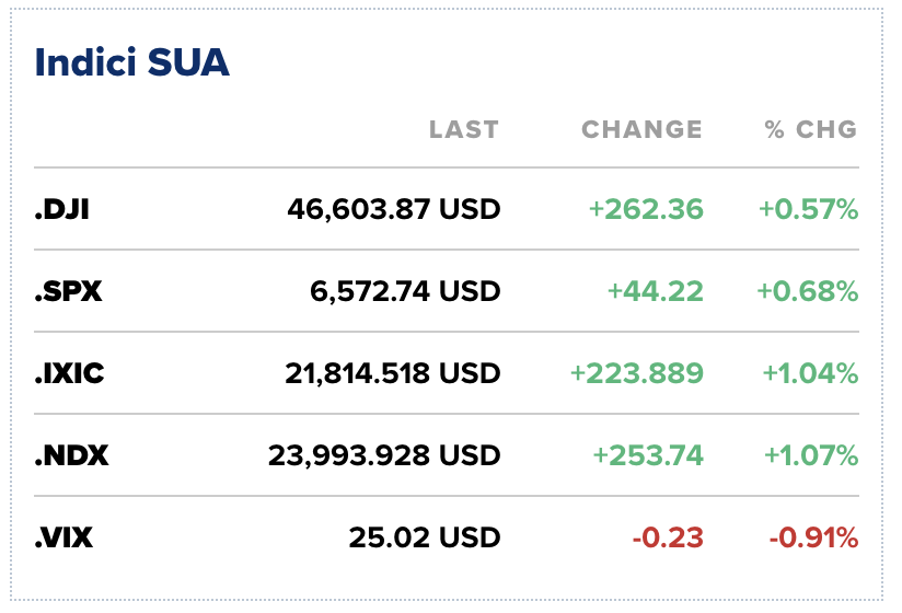 Indicele Nasdaq Composite a câștigat 1,04%, spre finalul sesiunii de tranzacționare, S&P 500 a urcat cu 0,7%, iar Dow Jones Industrial Average a adăugat 262 de puncte, adică 0,6%.