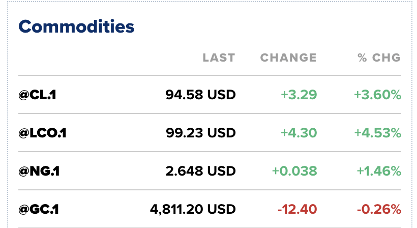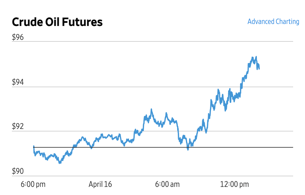 Contractele futures pe petrolul Brent au avansat cu 4,5%, până la 99,23 de dolari pe baril, în timp ce cele aferente sortimentului american West Texas Intermediate (WTI) au urcat cu 3,6%, la 94,5 dolari pe baril.