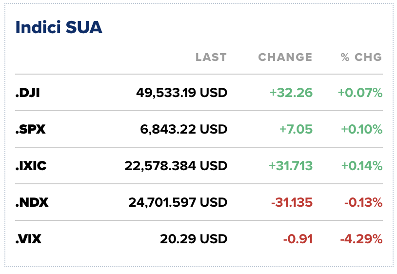 S&P 500 a închis ușor în creștere marți, chiar dacă slăbiciunea acțiunilor din sectorul de software a limitat avansul indicelui. Indicele a urcat cu 0,1%, la fel ca Nasdaq Composite, în timp ce Dow Jones Industrial Average a crescut cu 32 de puncte, sau aproape 0,1%.