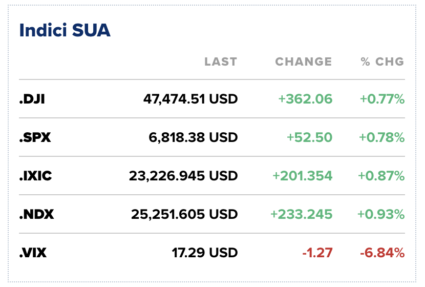 Vineri a fost ultima zi de tranzacționare din luna noiembrie. Nasdaq a scăzut cu aproape 2%, întrerupând o serie de șapte luni de creștere, în timp ce S&P 500 și Dow au închis ușor pe plus, sprijinite de câștigurile din această săptămână și marcând a șaptea lună consecutivă de avans.