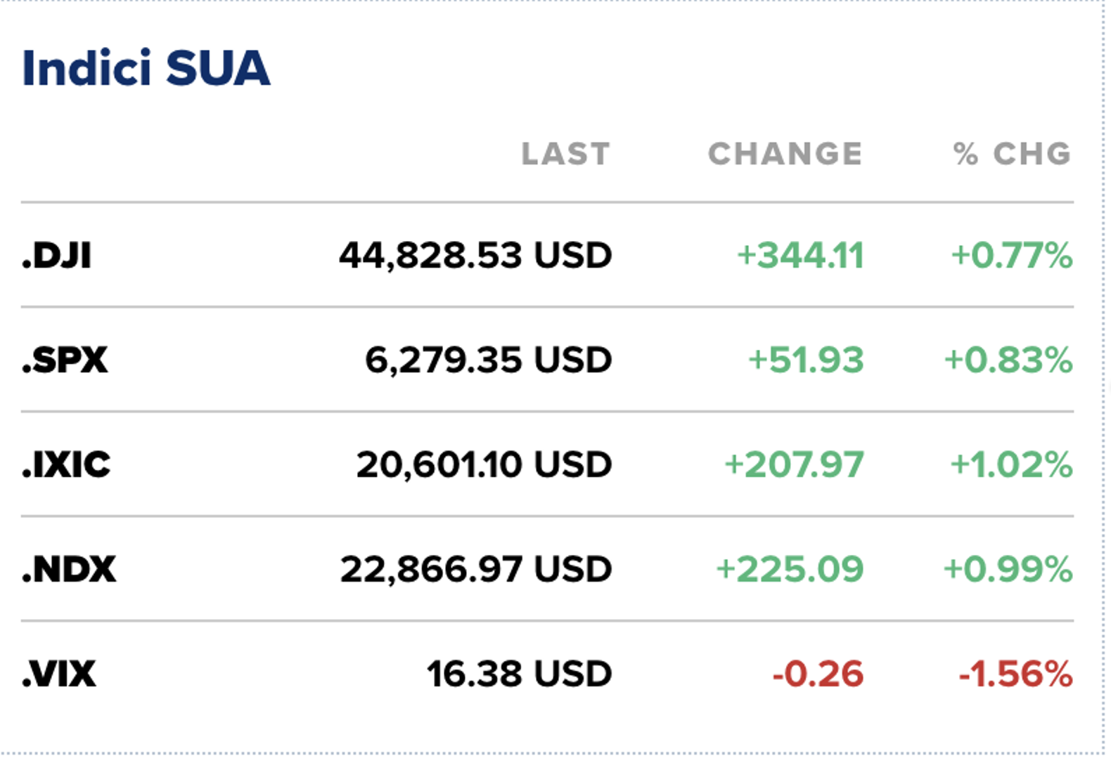 Din zona energiei, contractele futures pe țițeiul WTI au scăzut cu 0,44% și au închis la 67,15 dolari pe baril, cedând o parte din câștigurile consemnate în sesiunea anterioară. Investitorii sunt puțin îngrijorați de modul în care noile tarife americane ar putea afecta cererea globală de combustibil. Această scădere a avut loc chiar înainte ca OPEC+ să anunțe o decizie de a crește producția cu 411.000 de barili pe zi.